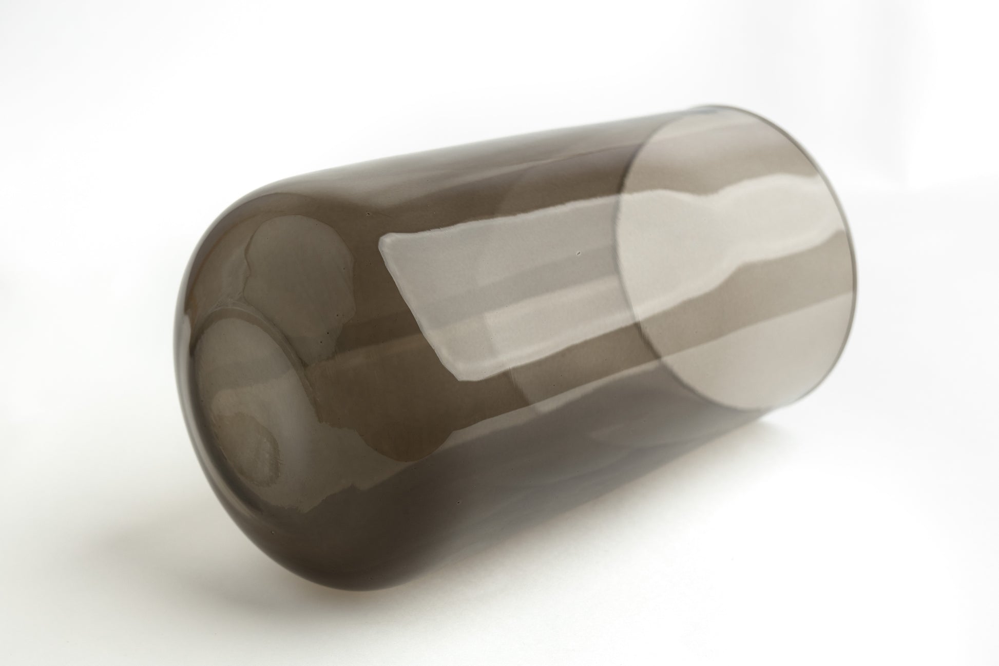 Nora is a elegant vase with a softly rounded form and a rich, smoky transparent colour. Its refined silhouette and subtle depth make it a versatile piece — ideal for long-stemmed florals or as a sculptural accent in any modern or moody interior.