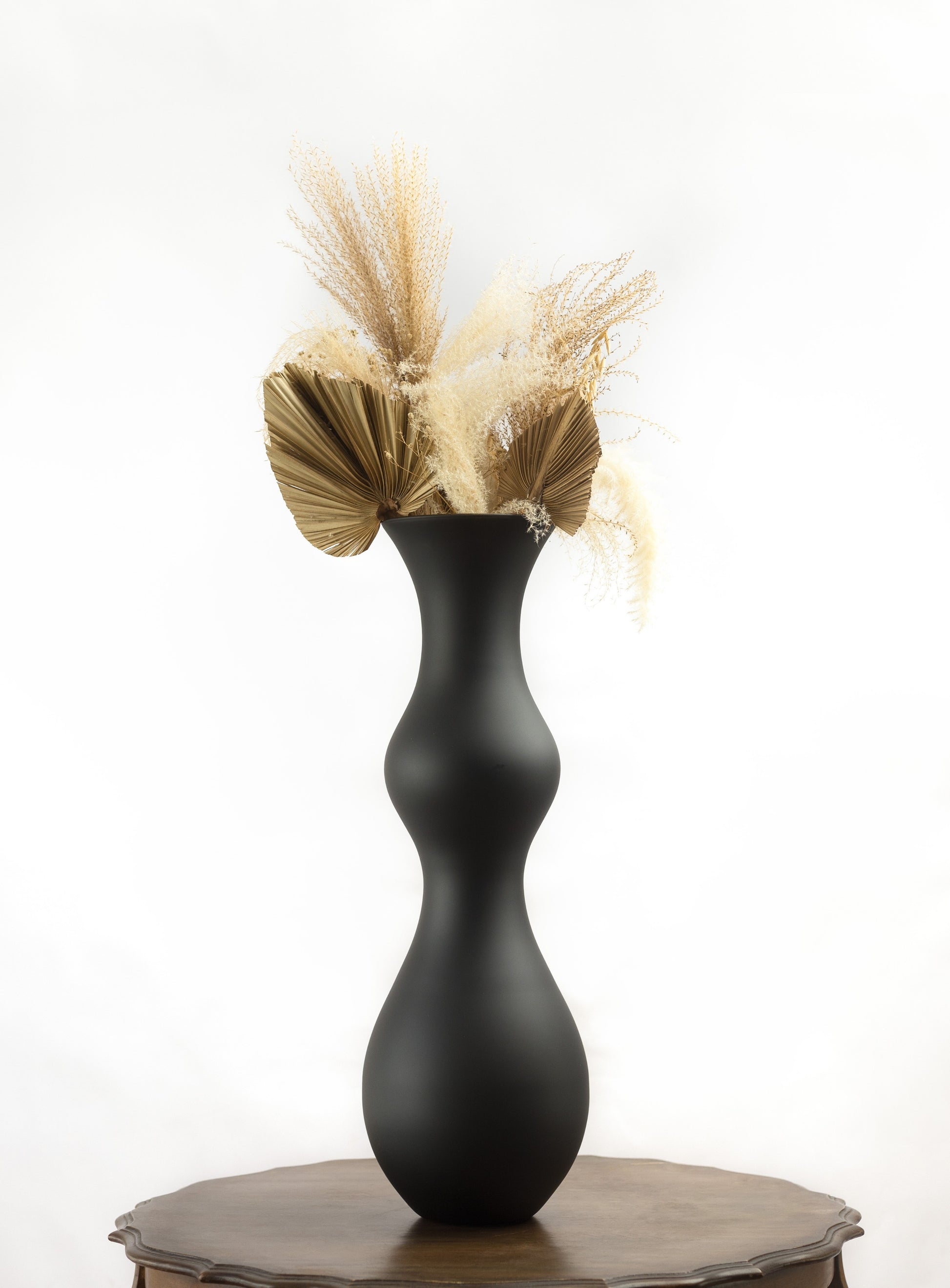 The Pear Onyx is a commanding presence in any space. Standing at 70cm tall with a smooth matte black finish, this bottle-shaped vase brings an air of modern elegance to your home. Perfect as a floor vase or a bold table top piece, it pairs beautifully with dried stems, pampas, or stands alone as sculptural décor.